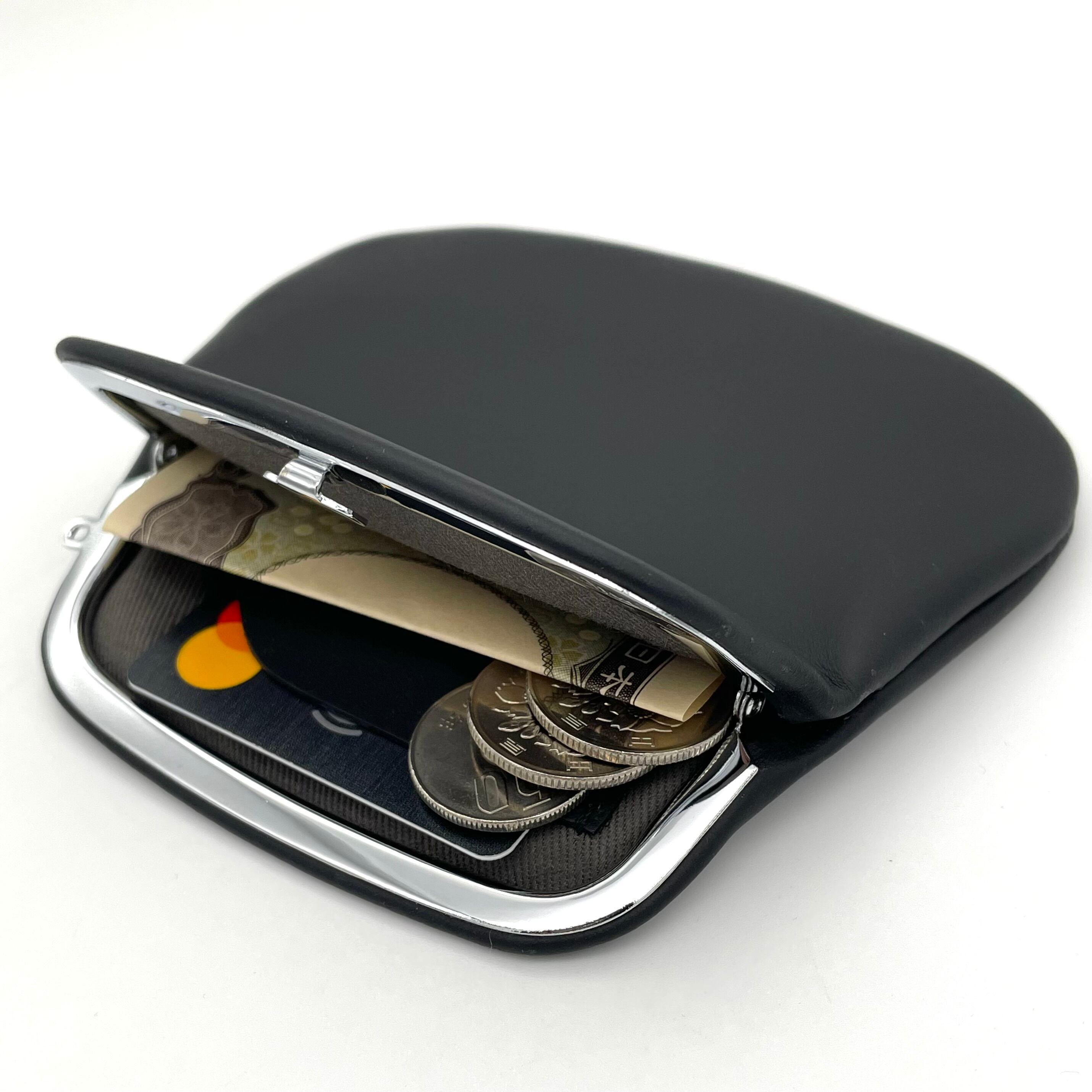 コインケースの開口部には天溝押し口タイプのがま口を採用し、スムーズな取り出しを実現しました。小銭の他にお札やカードも収納可能で、これ一つでお出かけが完了します!