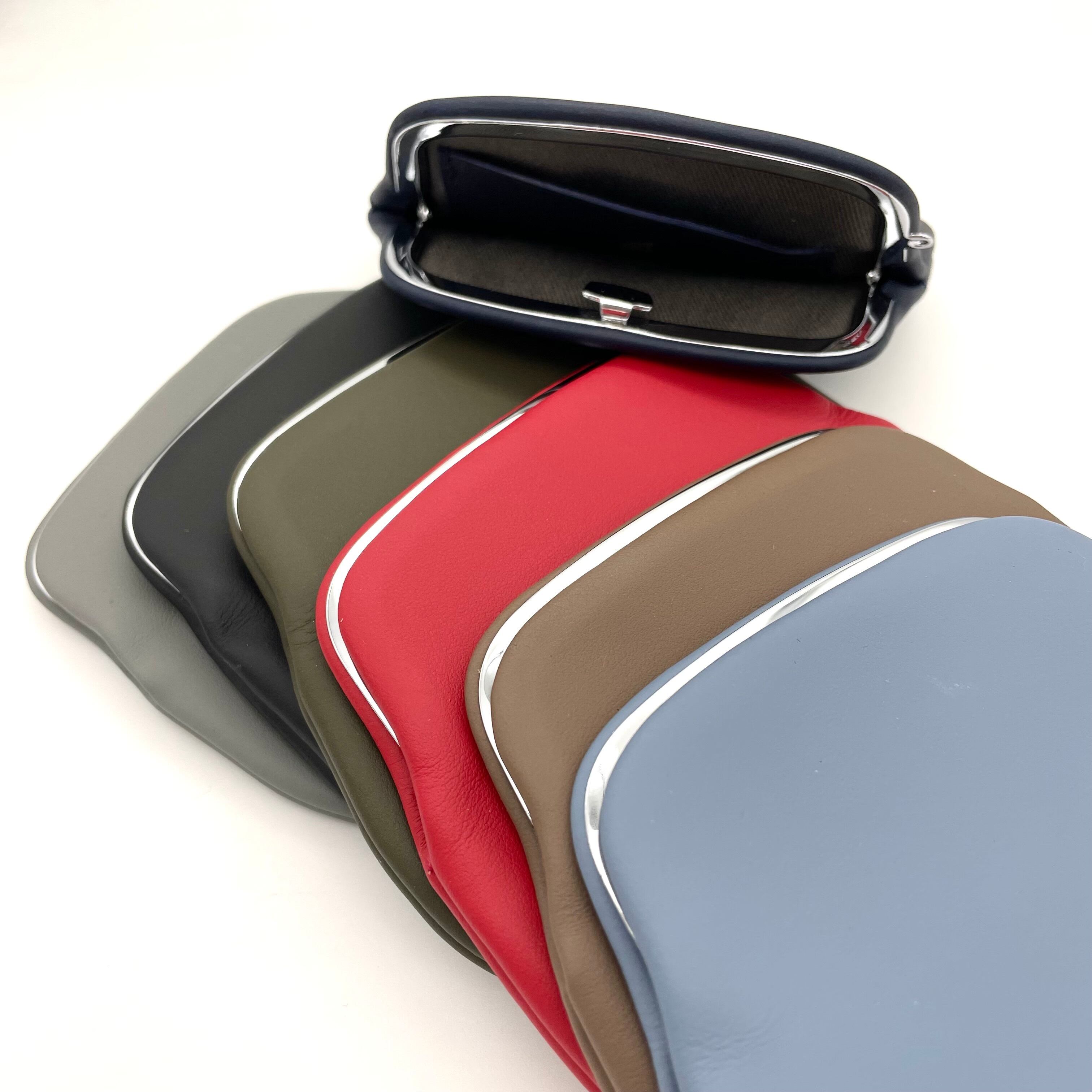 コインケースの開口部には天溝押し口タイプのがま口を採用し、スムーズな取り出しを実現しました。小銭の他にお札やカードも収納可能で、これ一つでお出かけが完了します!