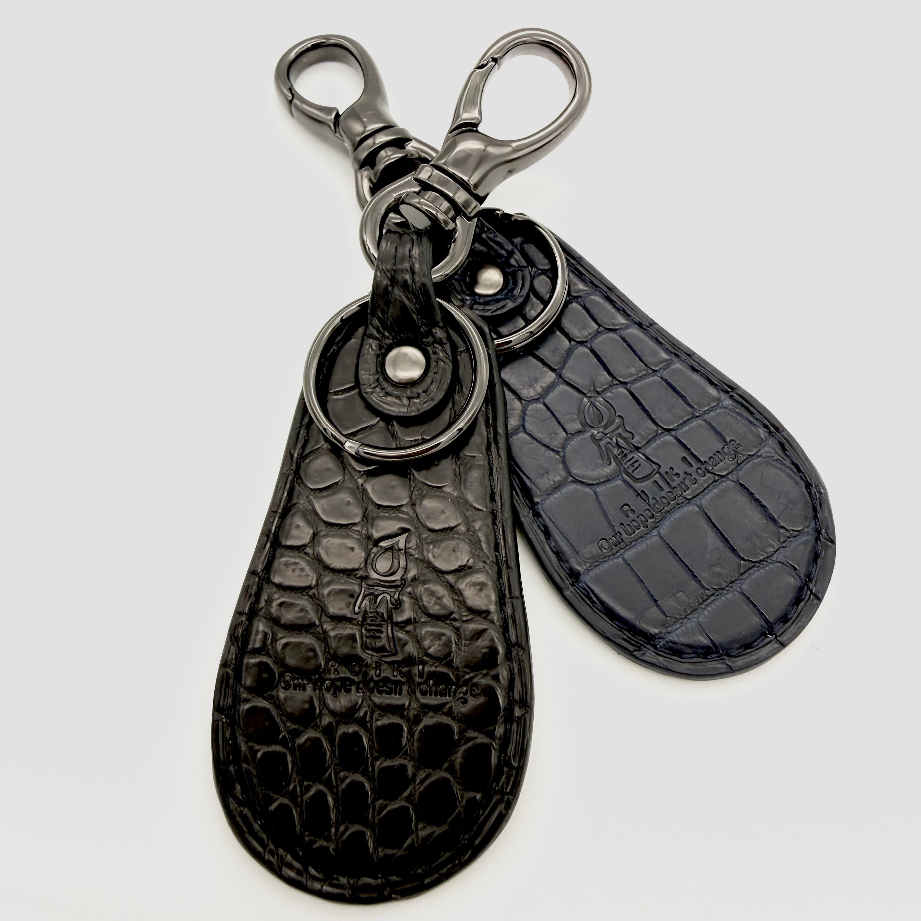 革製のシューホーンは、丈夫でありながらエレガントな仕上がり。クロコダイルの特徴的なテクスチャは、つい触れたくなるような魅力を感じさせ、使うたびに高級感を実感します。持ち運びにも便利なキーホルダーとしても使用でき、デザイン性と実用性を兼ね備えています。