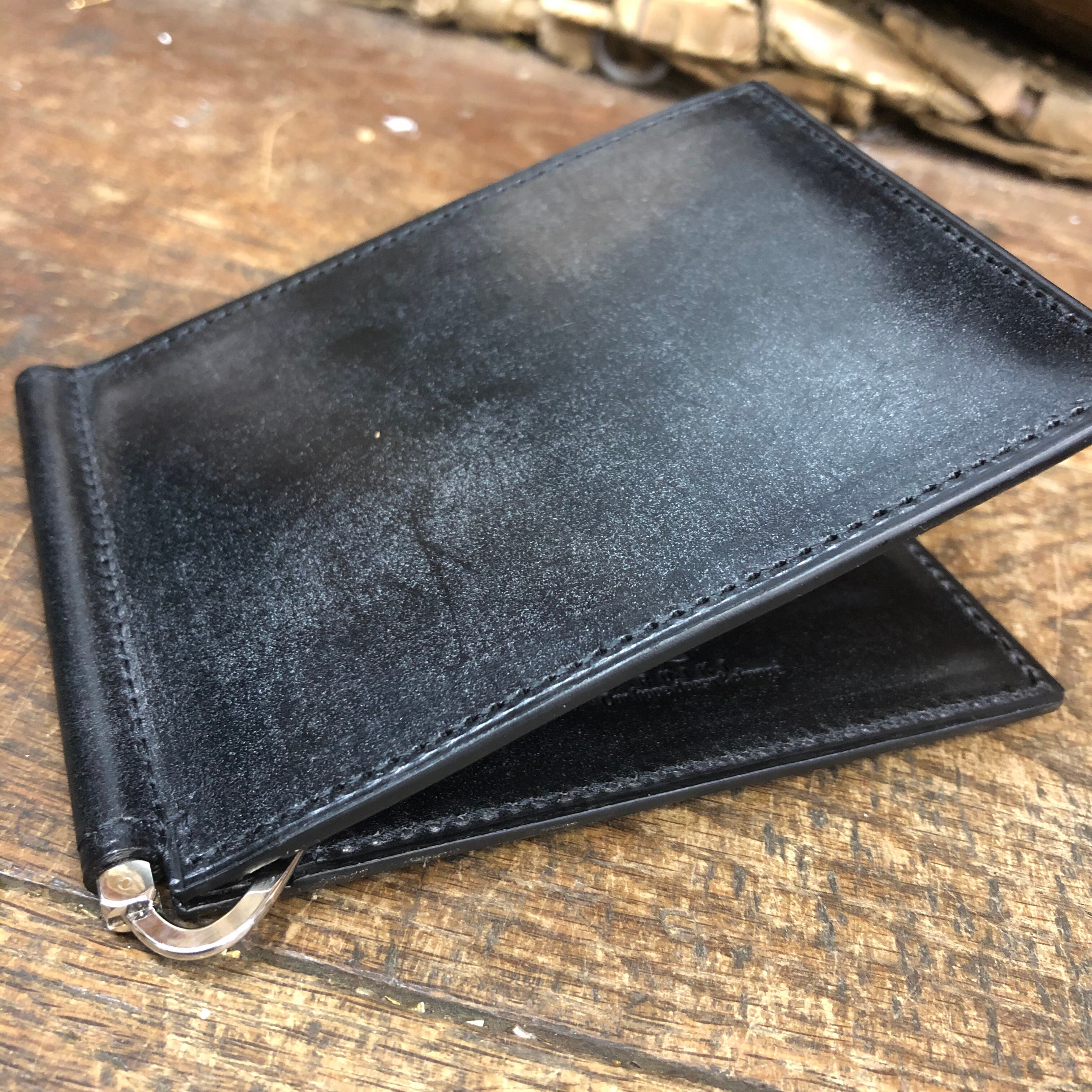 ブライドルレザー【ブラック】 マネークリップ 札ばさみ 札バサミ 金具が選べる カード収納